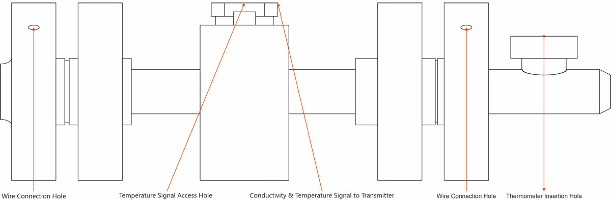 Because high temperature sulfuric acid is strongly corrosive, and traditional insulation materials cannot withstand this high temperature environment, the two coils are not in direct contact with sulfuric acid. In order to form a conductive circuit, the electrode flanges at both ends of the sensor need to be connected.