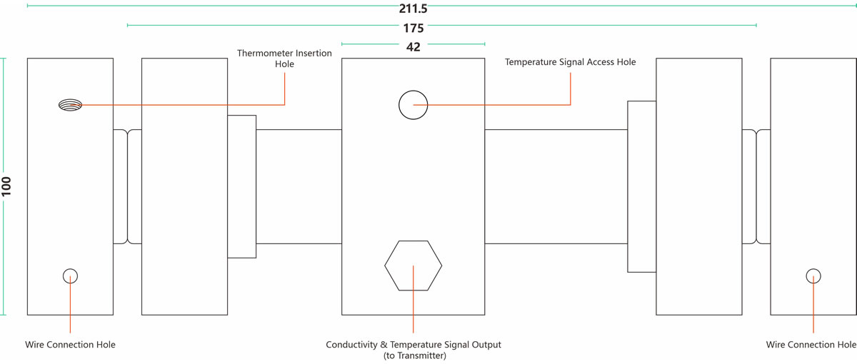 The AS118 sensor is suitable for measuring sulfuric acid in the concentration range of 0% to 5% and 96% to 100%, and can also measure the concentration of lye and saline solutions up to 500 to 2,000,000uS/cm, especially suitable for the concentration of concentrated sulfuric acid in high temperature environments and easily crystallized clog solutions. The sensor is designed based on the principle of electromagnetic induction and consists of a pair of electromagnetic coils. During the measurement process, complete isolation is achieved between the induction element and the measured medium. Of this pair of coils, one acts as the transmitter and the other as the receiver. When the coil is energized, the conductivity of the electrolyte solution generates an induced current, and the strength of this current is proportional to the conductivity of sulfuric acid. The receiver coil then detects the magnitude of this current and calculates the conductivity value of the sulfuric acid.