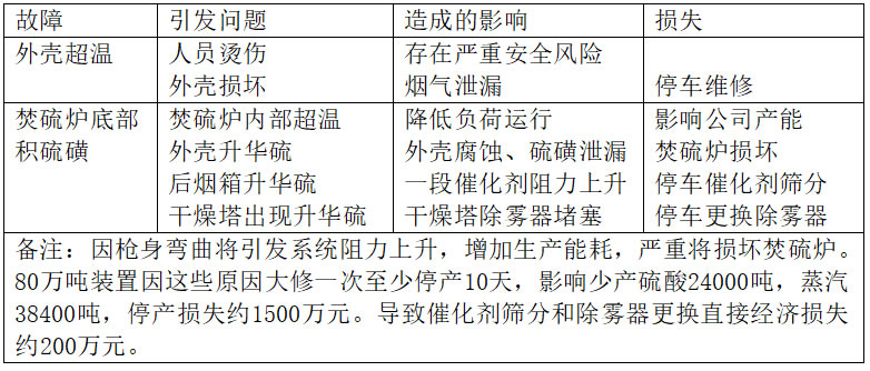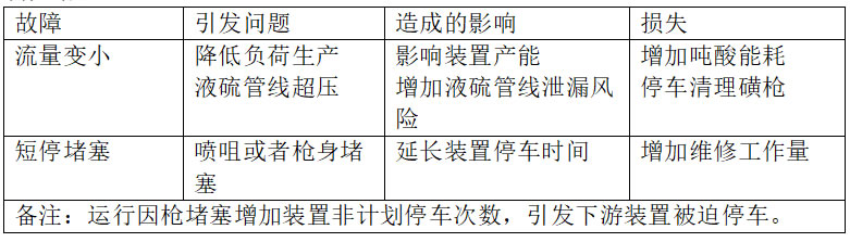 The sulfur-gun is the only channel for the liquid sulfur in the sulfur acid making plant to enter the sulfur burning furnace, and its health status is directly related to whether the device can run continuously. Because the sulfogun is a small static device on the device, it is less concerned about it. However, in the investigation of unplanned shutdown of sulfur acid making equipment, it is found that problems such as device shutdown, equipment corrosion and sublimation of sulfur caused by the fault of the sulfogun are also common.