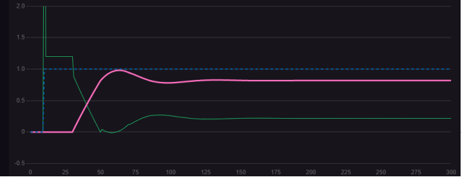 對比三幅控制曲線,合適的Kp值能夠有效加快調節速度并消除穩態誤差。過小的Kp值會導致明顯的穩態誤差,而過大的Kp值則會出現等幅振蕩的情況。