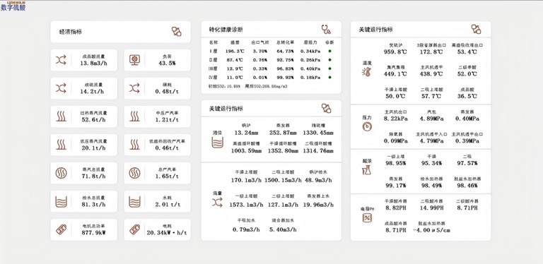 If the entire sulfuric acid plant is compared to an aircraft, then the KPI monitoring screen is like the "instrument panel" in front of the pilot. Its core lies in extracting key information from the vast amount of data, allowing managers and operators to instantly understand the plant's operational efficiency and status.