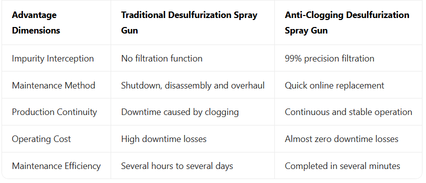 Table 1: Comparison of Key Indicators Between Traditional Desulfurization Spray Guns and Anti-Clogging Desulfurization Spray Guns